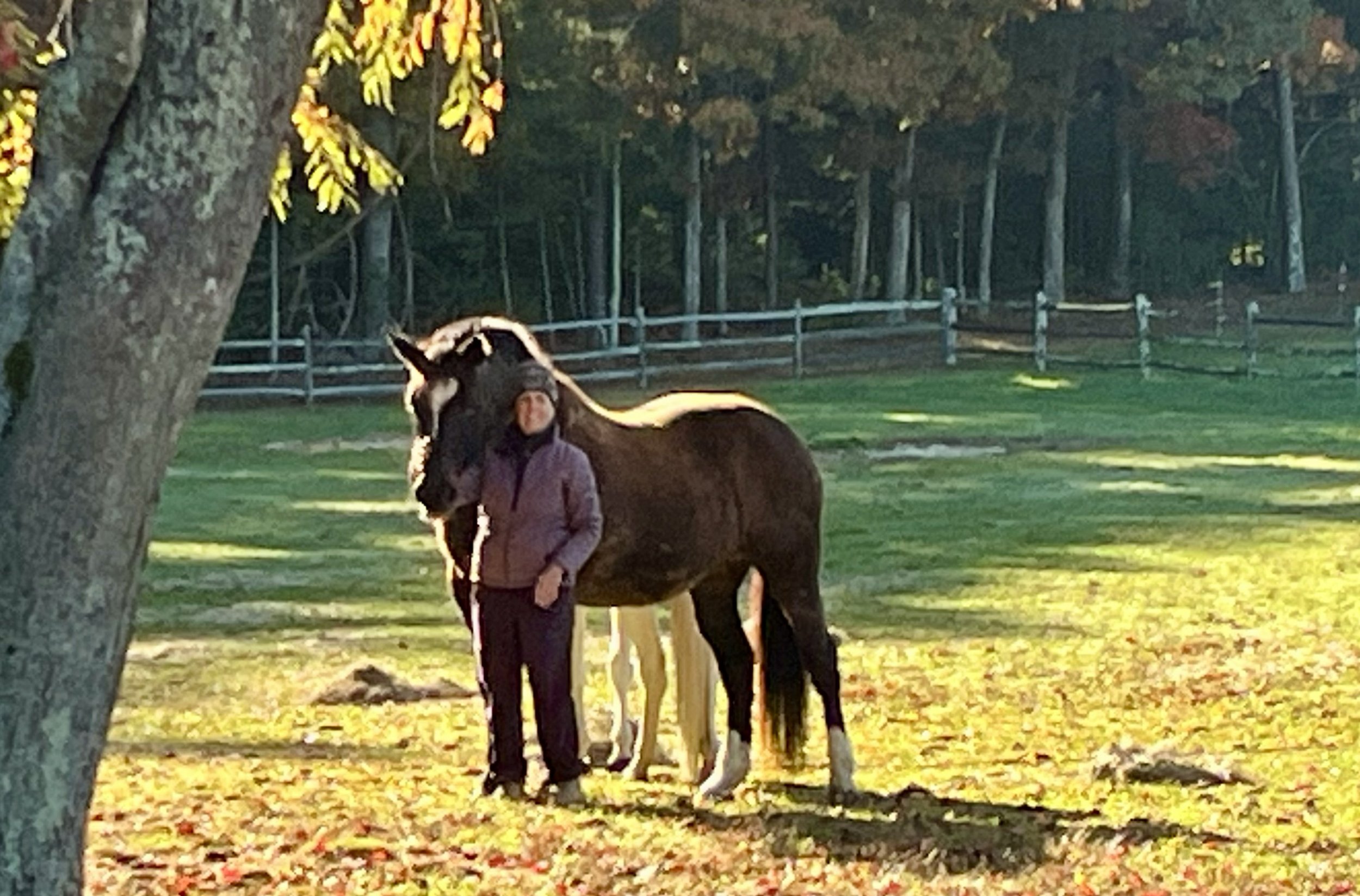 She is also co-founder of Be Well Studios in Scituate Harbor, where her background in yoga, mindfulness, bodywork and birth support informs a grounded compassionate approach to working with both humans and horses.